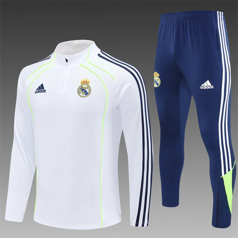 Real Madrid 25-26 1/4 Zip Tracksuit White Retro Version Chandal